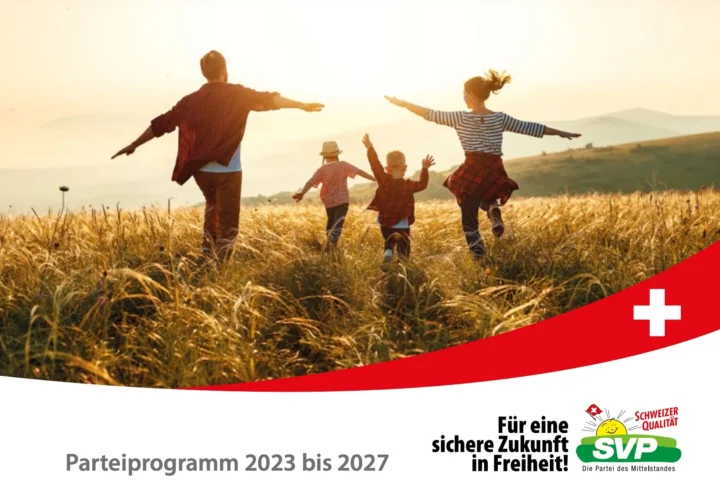 Das Parteiprogramm 2023-2027 der Schweizerischen Volkspartei steht unter dem Titel «Für eine sichere Zukunft in Freiheit!» und dokumentiert die politischen Standpunkte und Forderungen der SVP. Im Parteiprogramm finden Sie die Positionen zu allen wichtigen Themen der eidgenössischen Politik